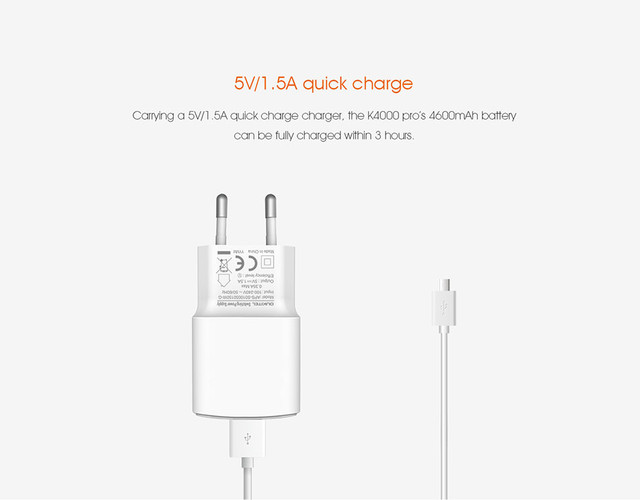 2). OUKITEL K4000 комплектується зарядним пристроєм 5V/1A, заряд батареї займає 3-4 години, OUKITEL K4000 Pro комплектується зарядним пристроєм 5V/1,5 A; заряд батареї займає близько 3,5 годин.